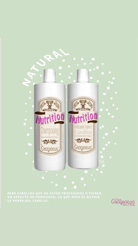 Esta maravilloso Duo de Nutricion para tu cuero cabelludo y darle suavidad inmediata a la fibra capilar. Su presentaciones de 1 l. Todos los productos están diseñados para depositar los nutrientes que requiera tu fibra capilar son naturales, no tienen memoria. Los puedes usar toda la vida y siempre te va a dar el mismo efecto.